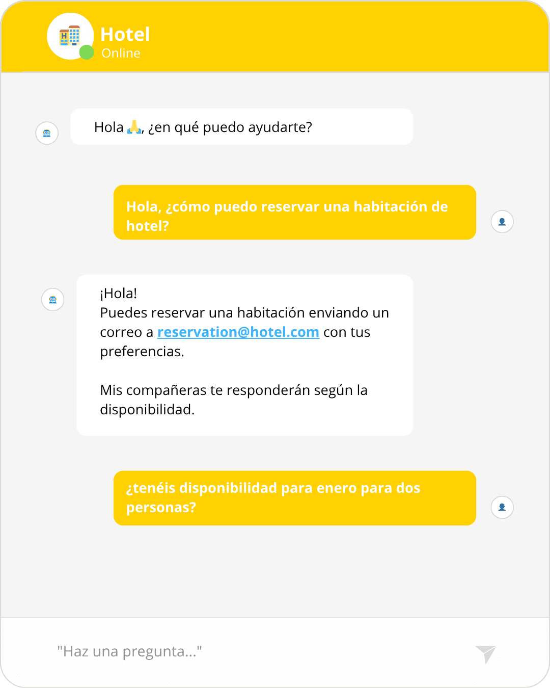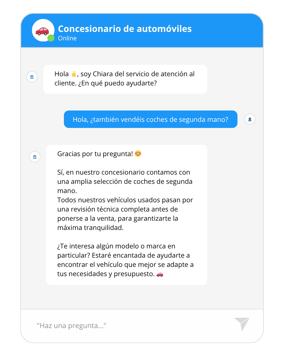 Ahorra tiempo valioso con un Asistente de IA que responde a tus clientes 24/7 en tu sitio web, en WhatsApp, en las redes sociales y en tus correos electrónicos.